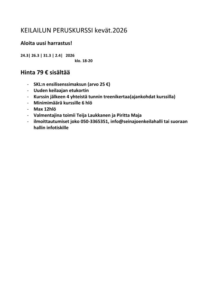 Varaukset netistä https://seinajoenkeilahalli.fi/ajanvaraus/